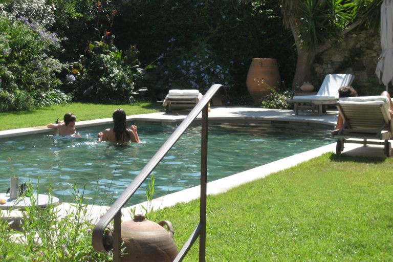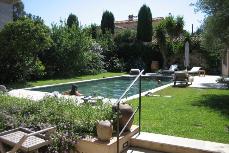 And when the whole family turns up, there’s plenty of room to lay on a veritable feast. We installed our first circular disappearing steps in this pool. The interplay of the grey tiling and the Burmese teak gives the water a very relaxing hue. A refreshing oasis of calm amidst of the hustle and bustle of the French Riviera.